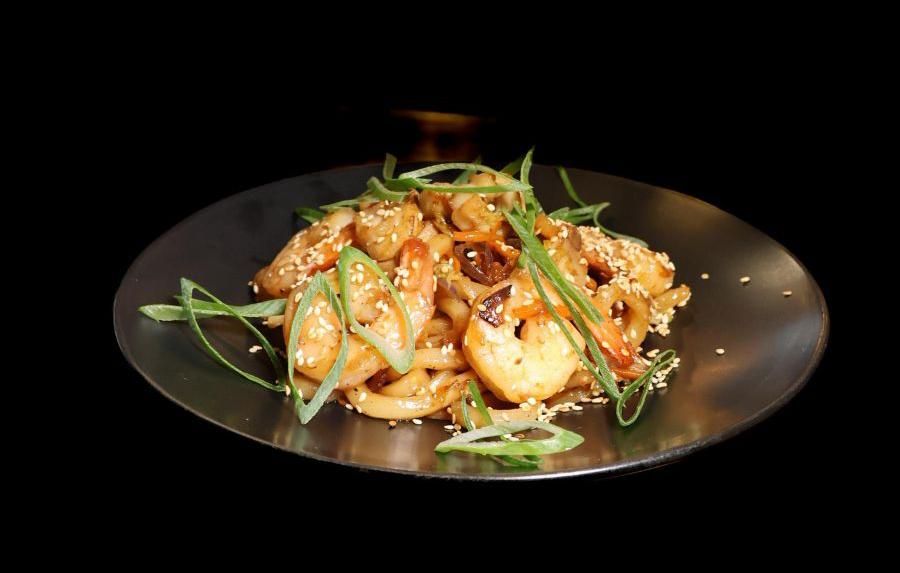SMAŻONY MAKARON Z OWOCAMI MORZA I WARZYWAMI